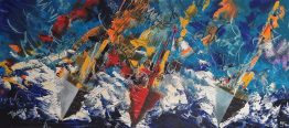 Nato a Genova il 17 febbraio 1950, Francesco Musante è uno dei principali artisti liguri. Si diploma prima al Liceo Artistico del capoluogo ligure e poi alla sezione distaccata Albertina di Belle Arti di Torino. Negli anni Settanta, in piena contestazione studentesca, decide di iscriversi alla Facoltà di Filosofia di Genova e frequentare i corsi di pittura presso l’Accademia di Belle Arti di Carrara. Le sue prime sperimentazioni artistiche risalgono al 1967: si tratta perlopiù di ricerche astratte su grandi campiture di colore. L’anno successivo comincia a esporre le sue opere in mostre collettive, concorsi di pittura e premi. I lavori degli anni 69-70 risentono dell’influenza della Pop Art e dei Combine Paintings di Rauschenberg. A partire dal 1971 decide di fare l’artista a tempo pieno e due anni dopo fa il suo esordio con una collettiva e una personale tenutasi alla galleria Il Quadrifoglio della Spezia. Un anno importante che segna l’inizio del suo lungo e fortunato percorso artistico anche come incisore. Dal 1983 comparirà infatti nei cataloghi delle Incisioni originali italiane e straniere dell’800 e moderne della Libreria Antiquaria di Dino e Paolo Prandi. Fino alla metà degli anni Settanta, Musante frequenta Torino e in particolare la Galleria Sperone, conosce alcuni artisti dell’Arte Povera, tra cui Penone. Nel 1975 si assiste a un cambio di rotta: Musante si dedica alla pittura figurativa, inizialmente creando una serie di figure femminili ispirate a Klimt e alla Secessione Viennese. Un tema che sviscererà lungo dieci anni utilizzando le più diverse tecniche – dall’acquarello, all’olio, al collage, all’incisione – e svariati supporti – tela, legno, ceramica, lastra, carta. A poco a poco comincia anche il lavoro con la grafica e gli acquerelli dove si intravedono i primi spunti narrativi e fantastici che contraddistinguono la sua opera dal 1985 fino ad oggi: compaiono i suoi “omini” che sembrano usciti da un libro di fiabe e inseriti in contesti pieni di oggetti, personaggi e parole. I suoi dipinti escono finalmente dalle atmosfere “drammatiche” e si alleggeriscono.